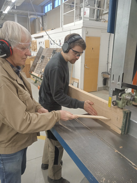 Each group kept on working on their different parts of the bench, using different machines. After having cut the top of the bench into several parts, the students glued them together and they fixed clamps and side clamps. Then they used the thickness planer so as to remove some dry glue, and get a smooth surface. For the feet, in order to manufacture the mortises, some students used the bandsaw or the vertical router.