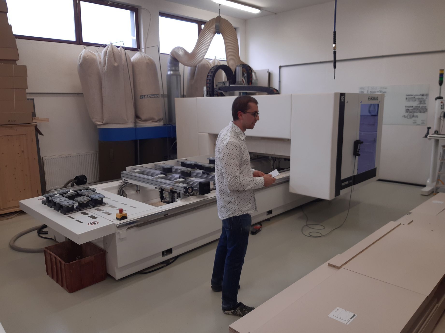 After lunch, at 1.30pm, we took a bus to go to TANPA company in another part of the town of Liberec, which currently operates in household and furniture manufacturing sector. We came over with the two big chairs’ parts in order to cut them with the CNC machine.