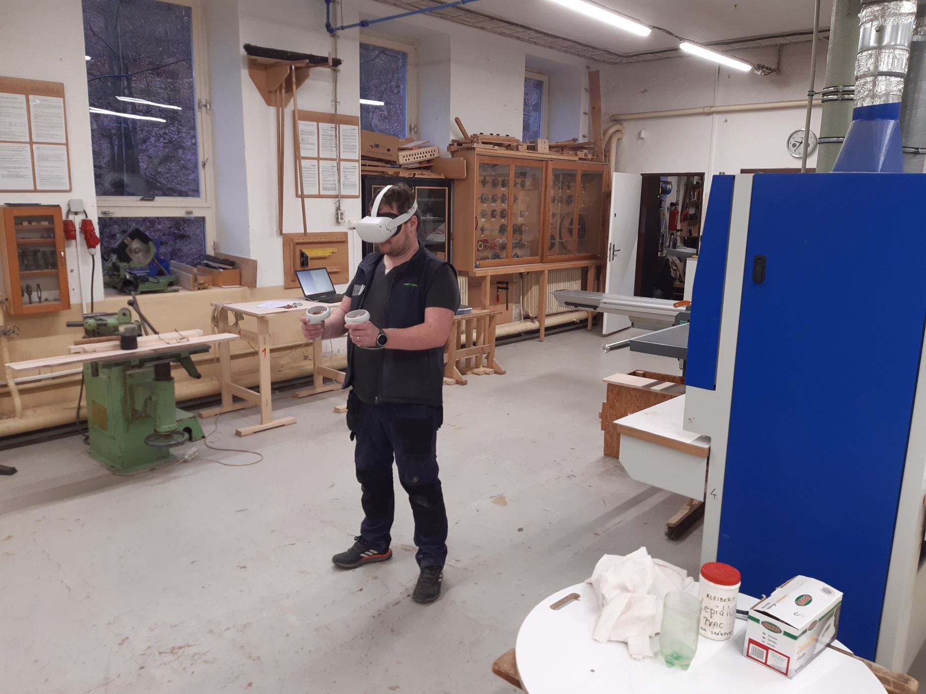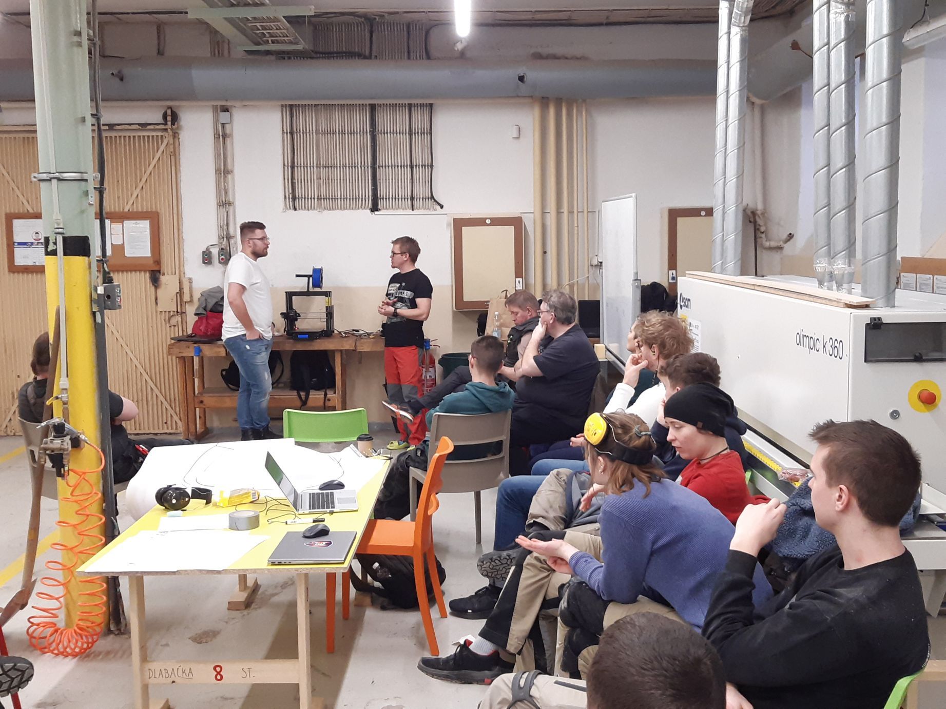After lunch, we could have an insight into how the departments of Katerinky school can work together: we met two colleagues from the 3D printing department. Indeed, in design department, students design furniture and other interior fittings, which can be made then by the trainees in the carpentry department. 3D printers and VR glasses are also used in the modelling process.