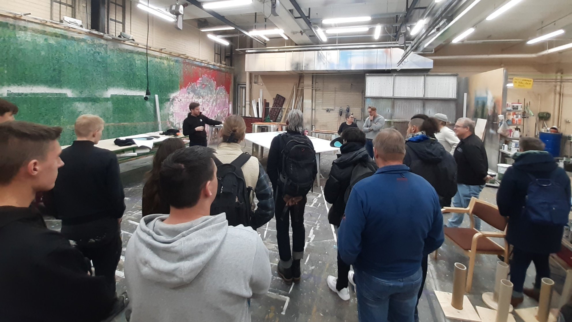 It was also decided that there would be some students responsible for shooting videos and some others responsible for creating an Instagram account. Students used the crosscut circular saw in order to cut the wood plank at the right dimension in order to get the top of the bench. They used the bandsaw so as to remove the raw material on the edges. At 2.pm we stopped working and went to Mediapolis, a centre of storytelling and digital industries, located in the Tohloppi district of the city of Tampere.